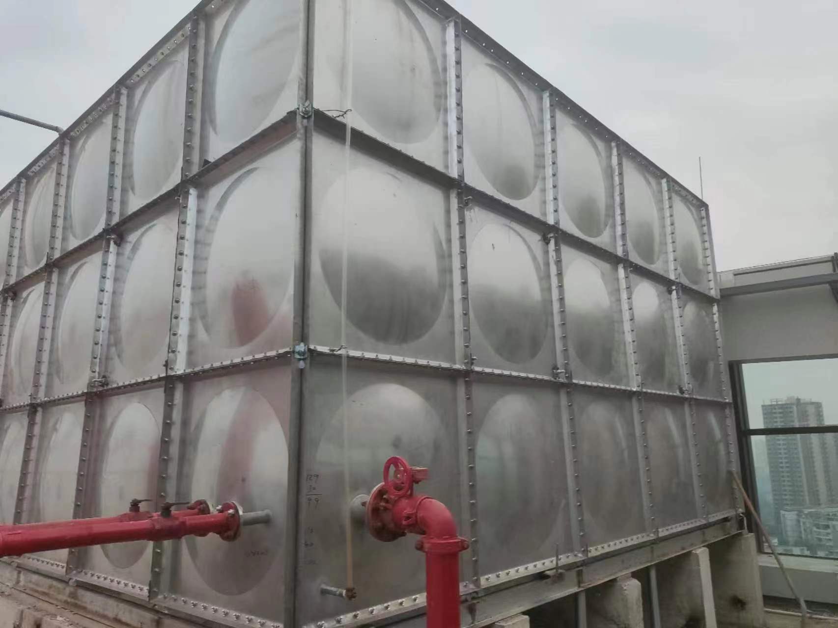 一樣。鍍鋅鋼板水箱的板塊均由鍍鋅鋼板組裝 , 用槽鋼底架支撐箱底 , 內用熱鍍鋅拉筋加圖 , 塊之間